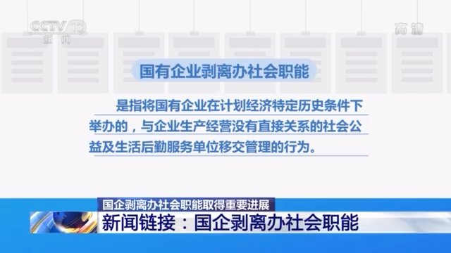 国资委副主任 翁杰明:减轻企业负担,瘦身健体、提质增效,解决了国有企业大而全、小而全的弊端。剥离办社会职能将全国国有企业办社会职能涉及的2430亿元资产转化为主业资产,促进国有资本和国有企业做强做优做大。