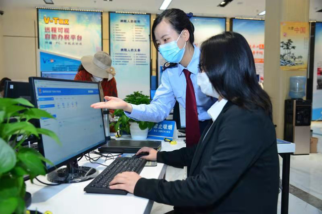 图为税务人员指导纳税人使用V-Tax办税系统 税务总局供图