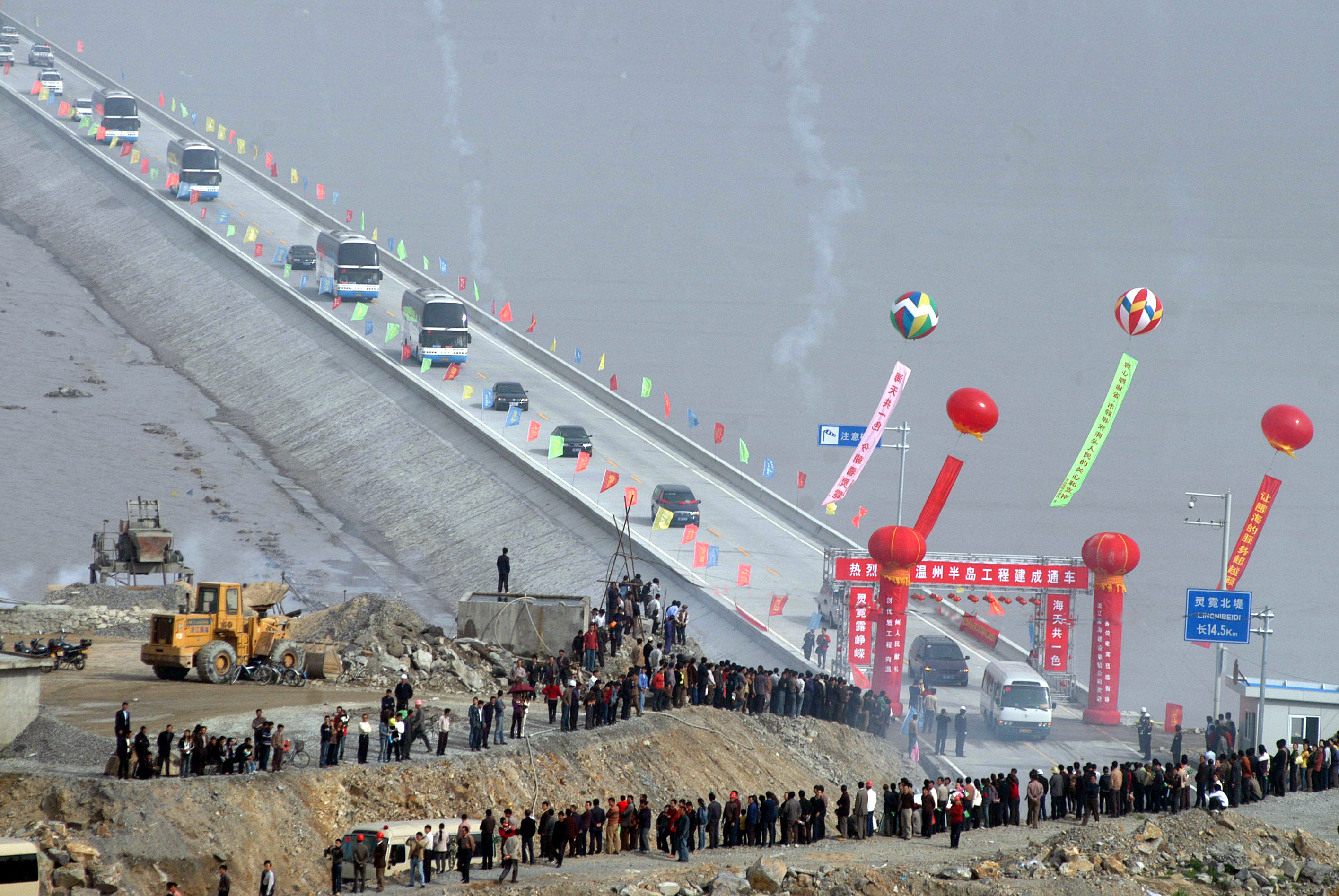 2006年4月,灵霓大堤建成通车现场。 (洞头区委宣传部供图)