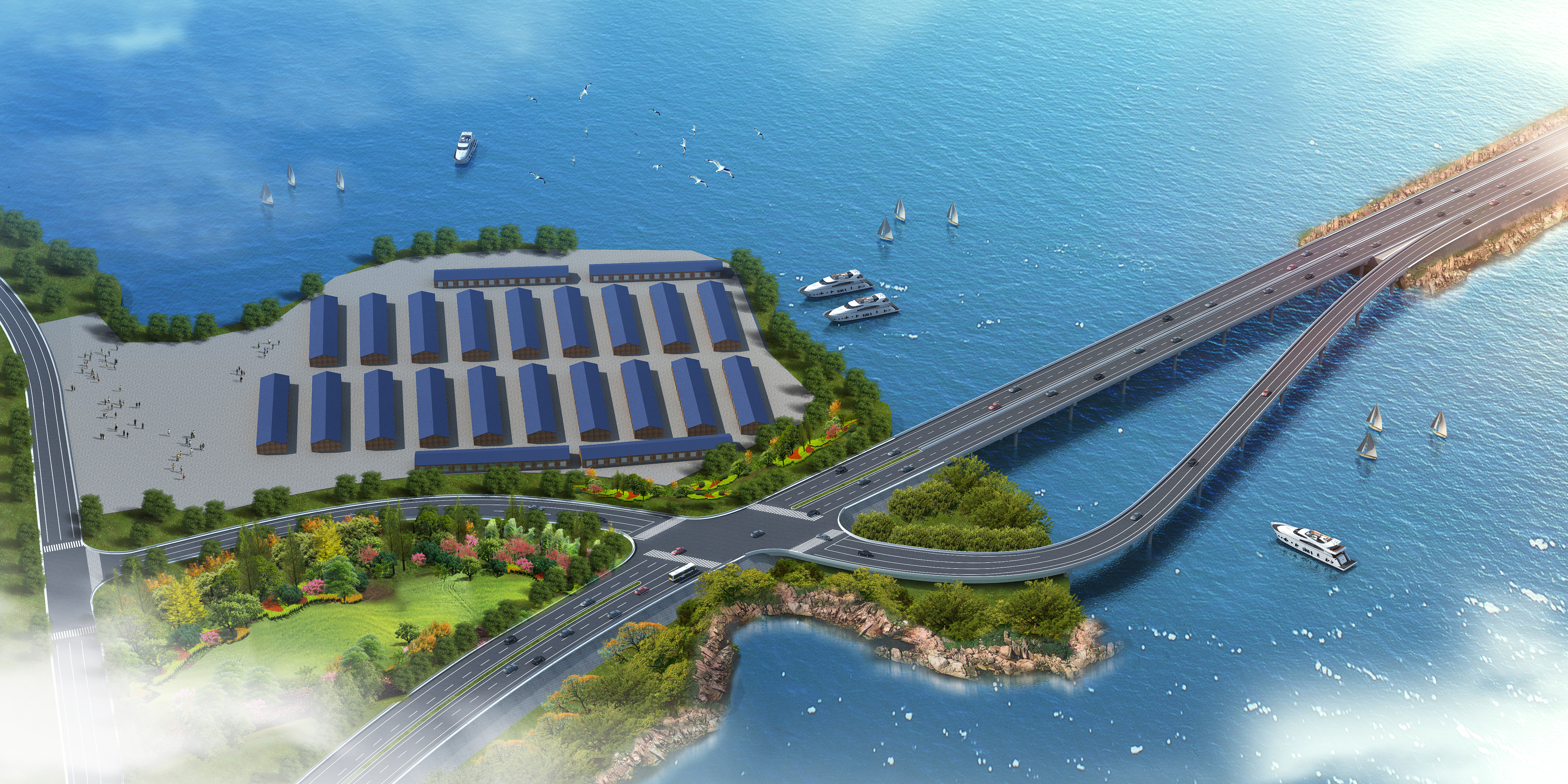 项目完工后的示意图,该片海域南北两侧海水得以再次贯通,鱼虾类生物可通过生态海沟洄游。(洞头区委宣传部供图)