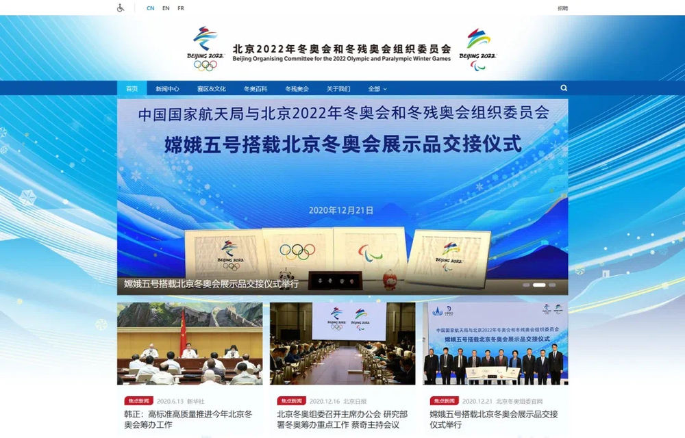 北京2022年冬奥会和冬残奥会组织委员会官方网站截图