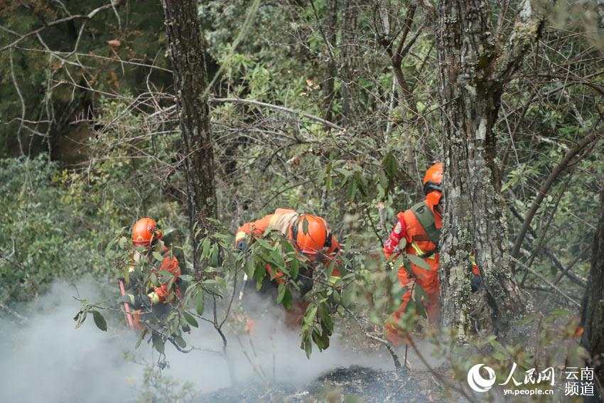 云南省森林消防总队先后投入迪庆大队、丽江支队、大理支队共364名指战员进行扑救。丽江市森林消防支队159名指战员正全力扑打火场西北线,大理州森林消防支队138名指战员正全力阻截东北、北线明火,迪庆州森林消防大队60名指战员跟进处理北线和东线零散火点。