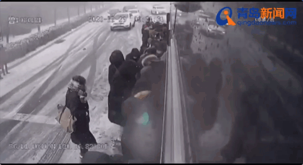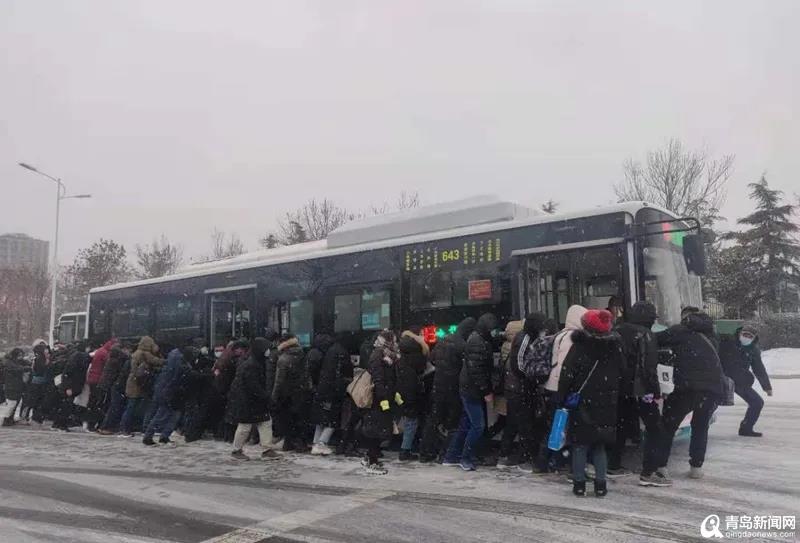 雪天,青岛街头现近百名