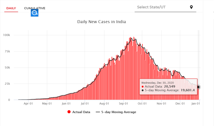 据印度卫生部当地时间30日8时(北京时间10时30分)发布的消息,印度累计确诊新冠肺炎病例达10244852例,其中死亡148439例,治愈出院9834141例,活跃病例262272例。24小时新增确诊病例20549例,新增死亡病例286例,活跃病例减少了6309例。