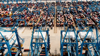 “建设一个同等规模的码头,自动化码头的造价要比人工码头高一倍甚至两倍。大约有人工码头的80%的效率。行业里头称它为‘贵族码头’。”