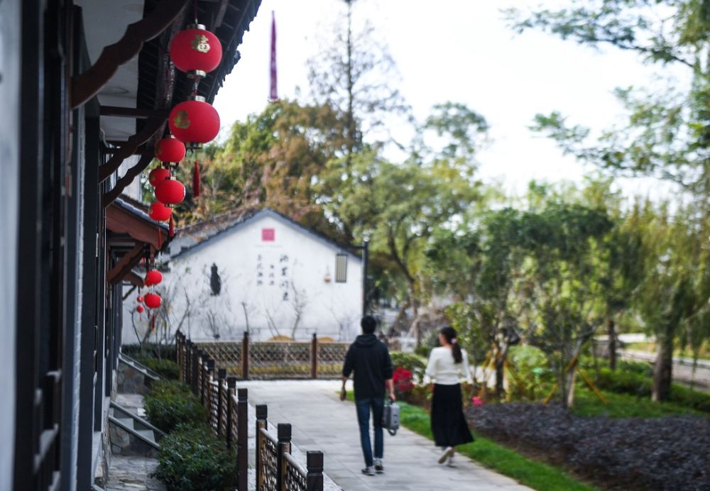 图为游人在浙江省湖州市吴兴区织里镇庙兜村内行走。 新华社记者徐昱 摄