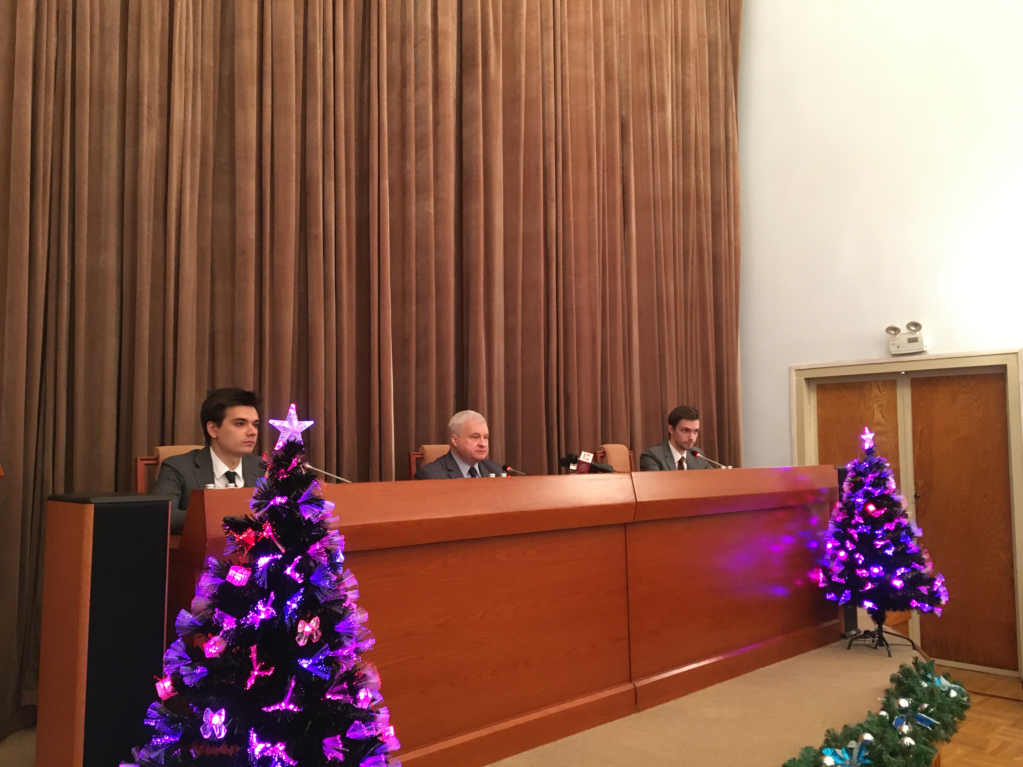 12月29日,俄罗斯驻华大使杰尼索夫(中)出席新闻发布会。新华社记者 郑冬睿 摄