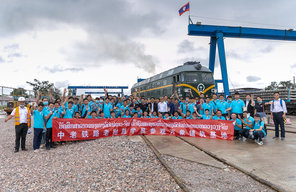 图为2020年9月11日,在老挝中铁二局中老铁路万象铺轨基地,老挝学员在参观后合影。(新华社发 凯乔摄)