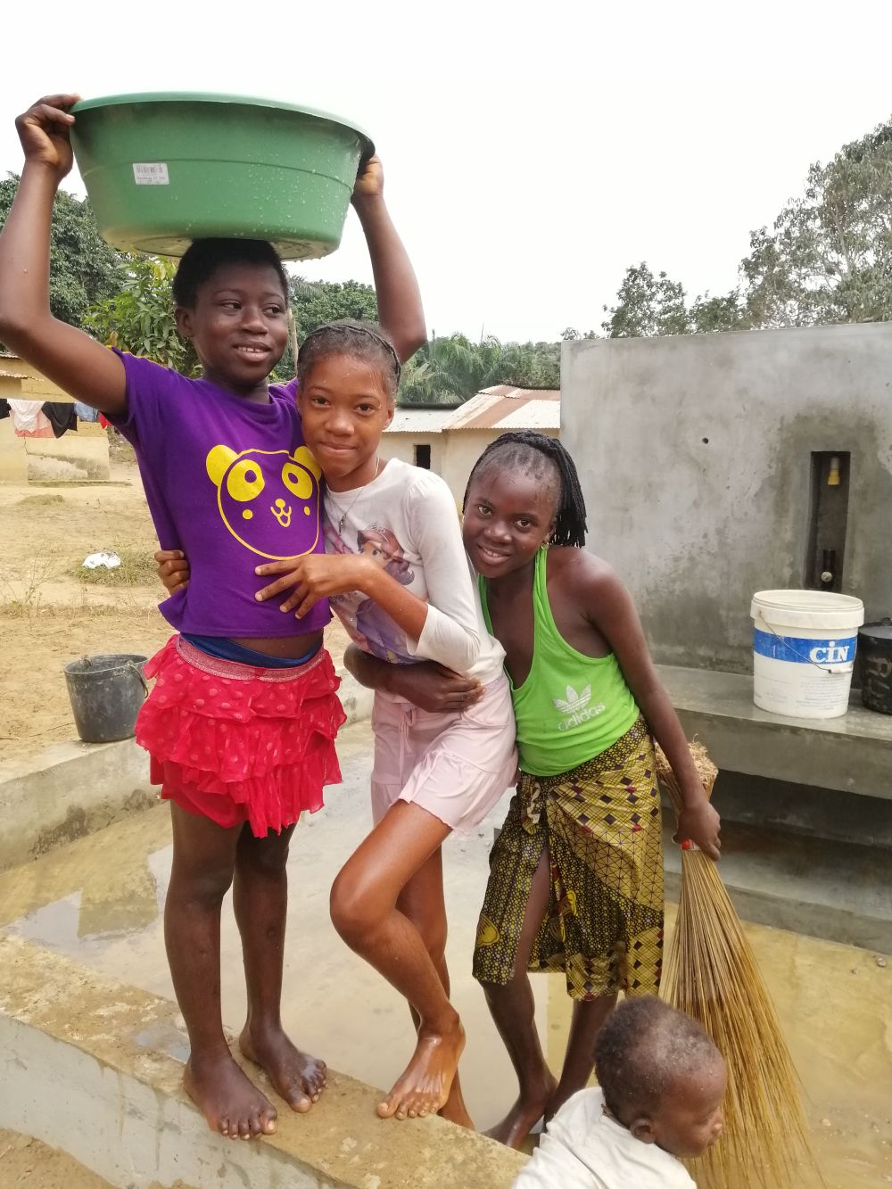 在安哥拉卡宾达省西芬布村新建的自来水取水点旁