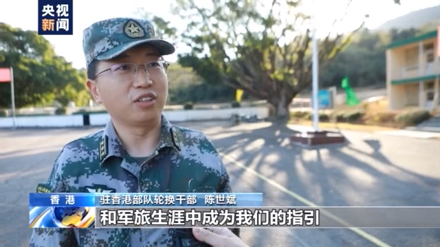 驻香港部队轮换干部 陈世斌:感谢驻港部队,在这六年的时间里自己经历了历练和成长。不管在驻港部队呆三年五年还是六年,相信驻港部队的精神会融入我们的血脉,会在我们人生的道路上和军旅生涯中成为我们的指引。