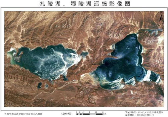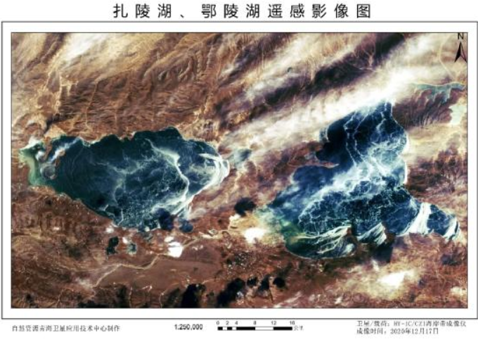 下面,让我们跟随海洋一号C卫星看看扎陵湖与鄂陵湖从边缘呈现出冻结迹象到水面全部封冻的过程,一起领略姊妹湖冰封世界的奇幻奇美。