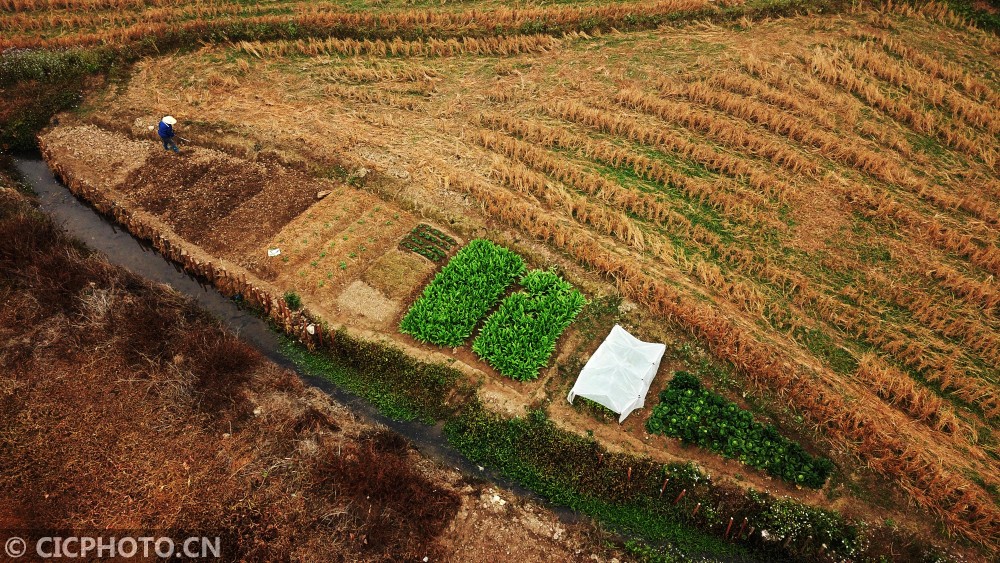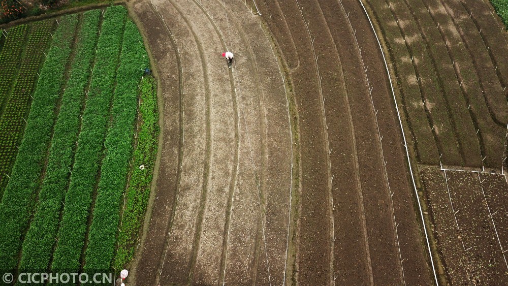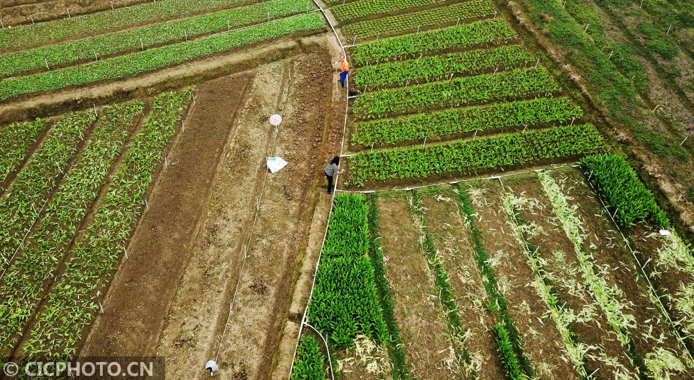 以上图片:广西壮族自治区南宁市武鸣区双桥镇造庆村村民在田间劳作。CICPHOTO/潘华清 摄