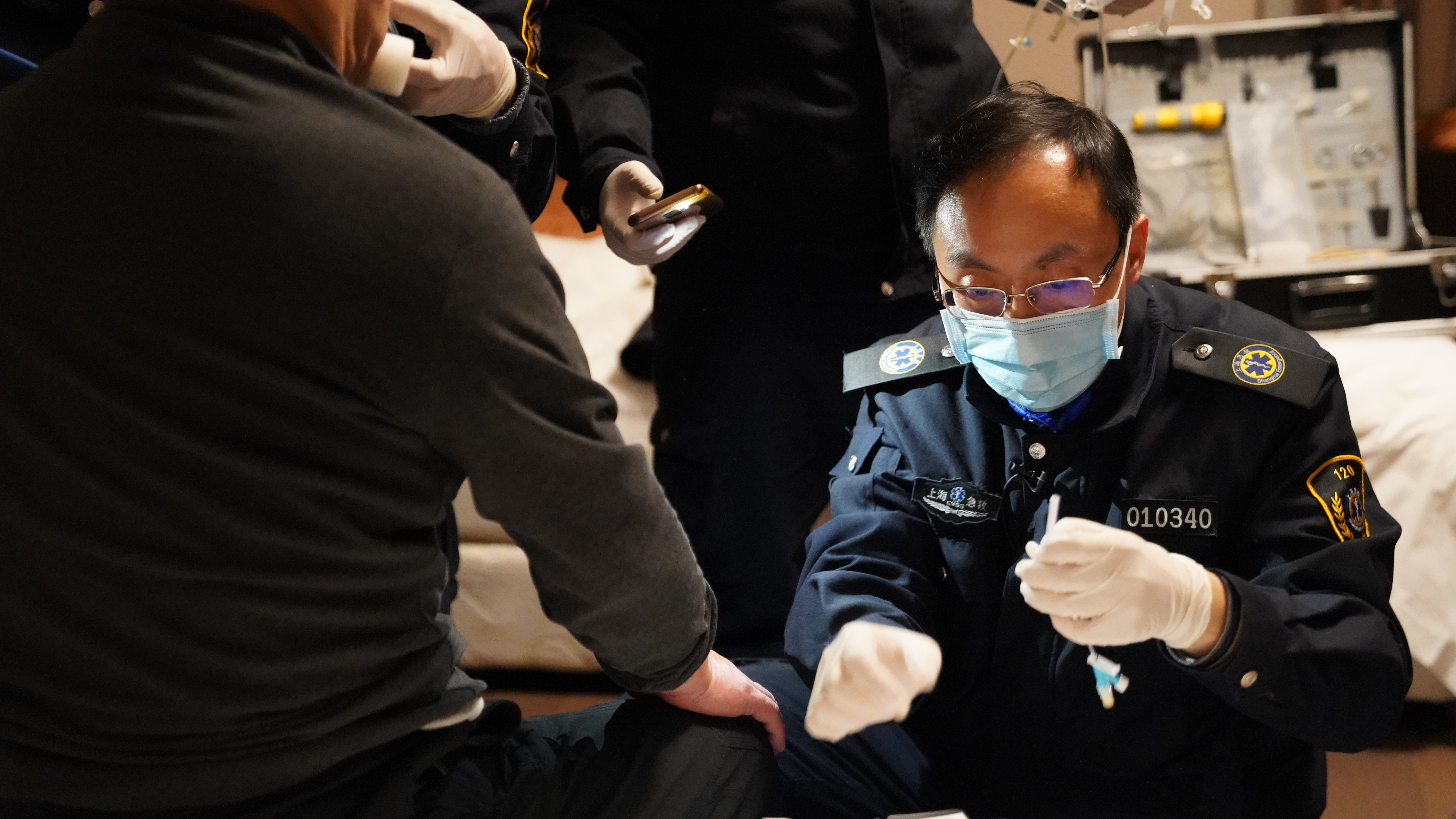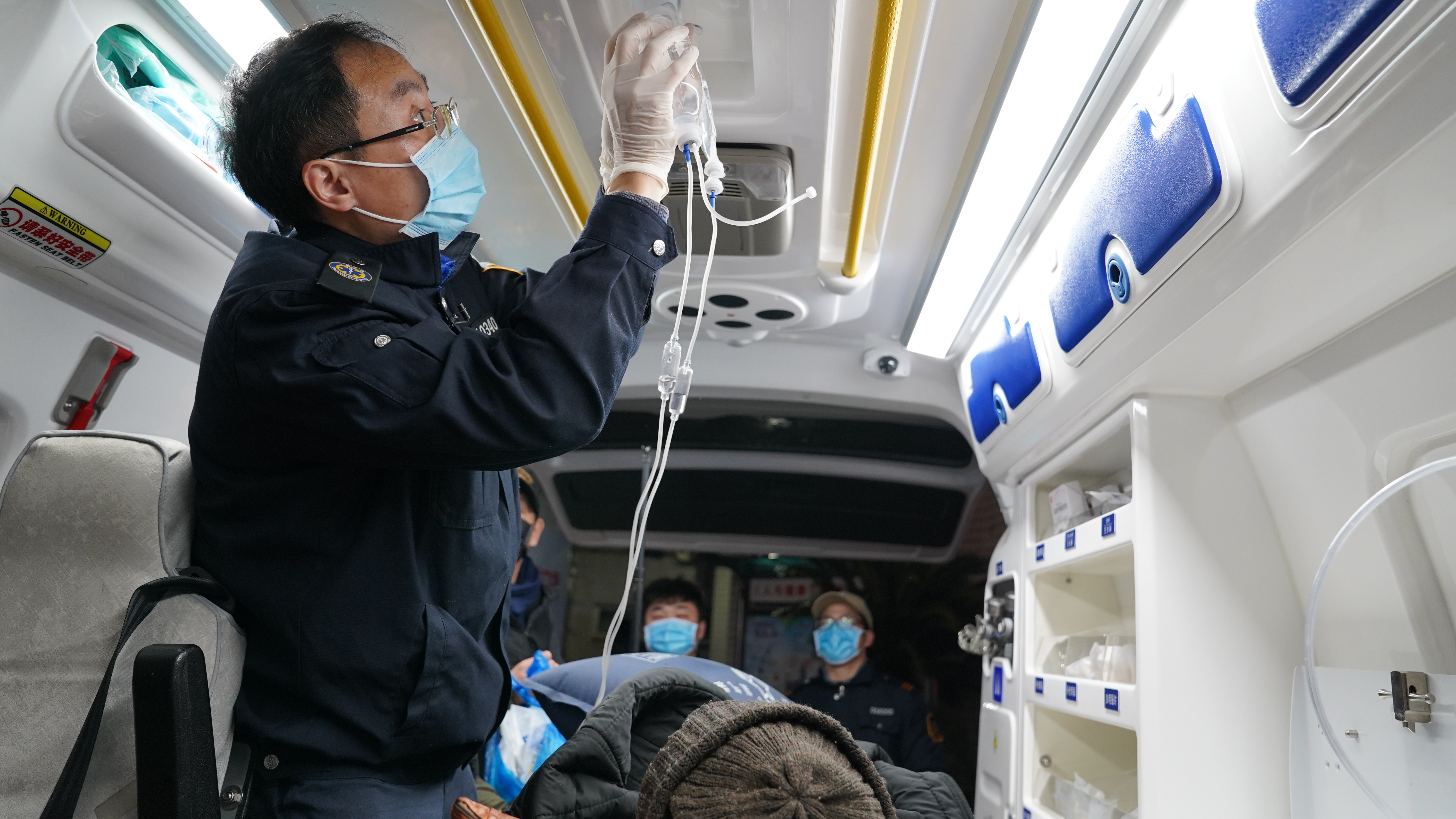 再次确认设备齐全、完好后,救护车鸣笛出动,前往上海市虹口区江湾医院。此次的急救对象是一位94岁的老人,病情危重。进入病房后,姚明向医生仔细询问老人的病情和用药情况,并和家属沟通老人病史、签署急救告知单。随后,在医护人员的协助下,老人被抬上担架,送上急救车,接入车载呼吸设备和监护设备,送至上海市第一人民医院,整个急救转运过程用时不到20分钟。