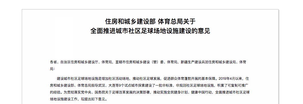 令人欣喜的是,国家正在通过城市试点进行破题。据介绍,住建部会同体育总局于2019年4月以来在9个市(县)开展城市社区足球场地设施建设试点工作,并已取得一定成效。