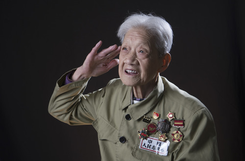 志愿军老战士王清珍,电影《上甘岭》中卫生员王兰的原型(新华社记者 程敏 摄)