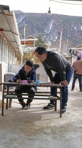 海拔上升到3000米,前夜的积雪让盘山道更加难行。11月28日,白凤光前往阿坝州松潘县安宏乡纳坡村,入冬后这条路的危险他深有体会,本就只有一天时间“回家”看看,结冰的路面让他显得有些焦急。纳坡村位于海拔3200米的高山区,曾经是典型的贫困村。两年多前,成都航空职业技术学院数控教研室主任白凤光以“第一书记”的身份踏上这片土地。2020年9月,白凤光卸任,回到熟悉的课堂。