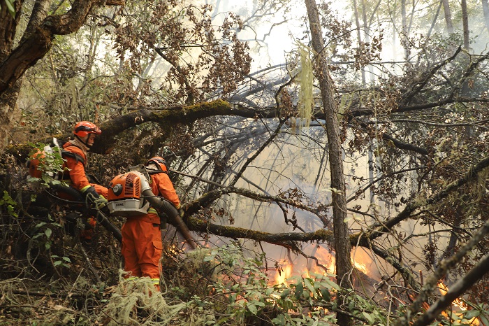 云南森林消防队伍在迪庆香格里拉火场连续奋战58小时 ,截至12月31日9时,火场西北线明火己全部扑灭。火场北线、东北线明火还在持续蔓延,长度约4.5公里,林火蔓延态势呈地表火伴树冠火,燃烧较为复杂。