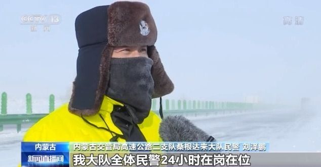 内蒙古交管局高速公路二支队桑根达来大队民警 刘泽鹏:我大队全体民警24小时在岗在位,采取警车带道,分段放行,遇有雪阻比较严重的地方,我们采取临时交通管制措施,待养护部门清雪完毕后,我们才对社会车辆进行放行。