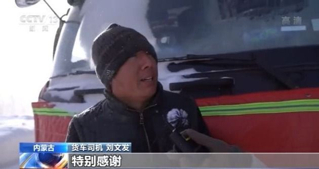 货车司机 刘文发:太冷了!他们(交警)又给清雪,又用锹挖,又找车给拽(车),特别感谢!