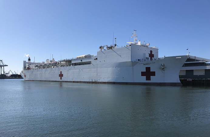 此前,军事医疗船“仁慈号”曾于疫情初期(3月27日)停靠在洛杉矶支援当地医疗机构。但由于不能接收新冠患者,该医疗船也未能提供更多有力的帮助,同时被批浪费医疗资源。其在接收数十名普通患者后,只得黯然离场。(央视记者 许骁)