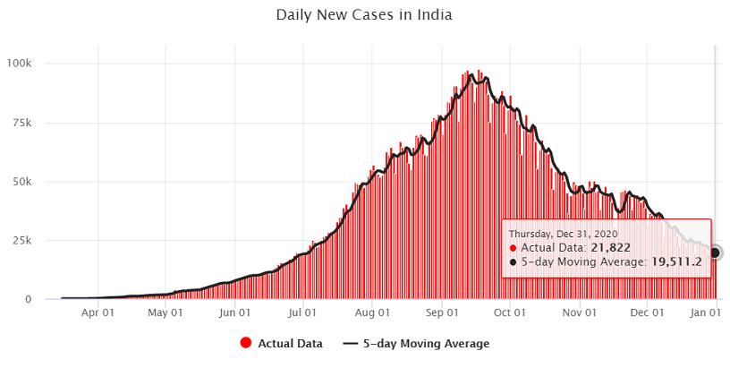 据印度卫生部当地时间31日8时(北京时间10时30分)发布的消息,印度新冠肺炎确诊病例累计达10266674例,其中死亡病例148738例,治愈出院9860280例,现存活跃病例257656例;24小时之内确诊病例增加了21822例,死亡病例增加了299例,活跃病例减少了4616例。(总台记者 王建兵)