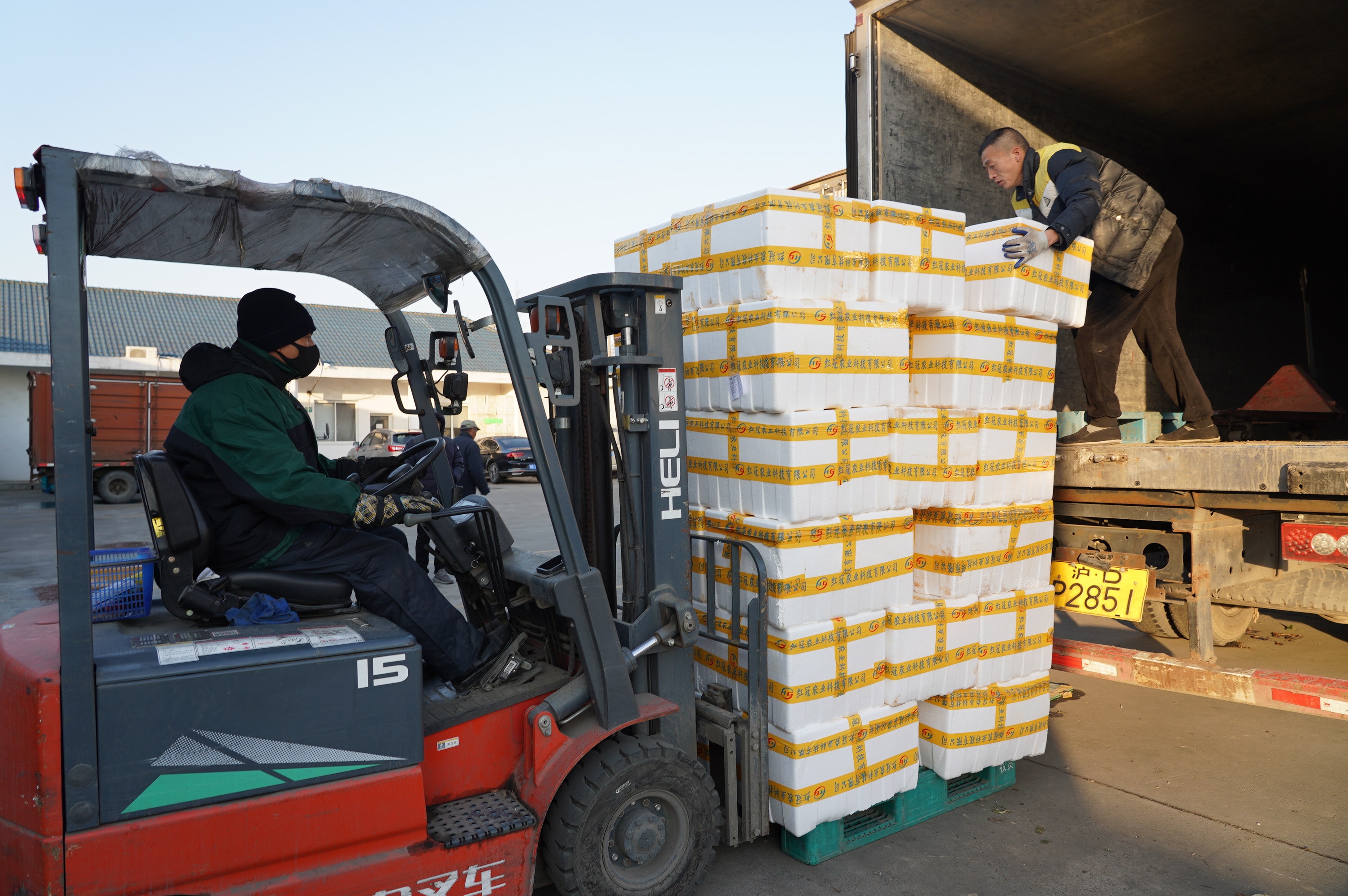 12月30日,包装好的蔬菜正在装车准备送往上海市区。新华社记者 王翔摄