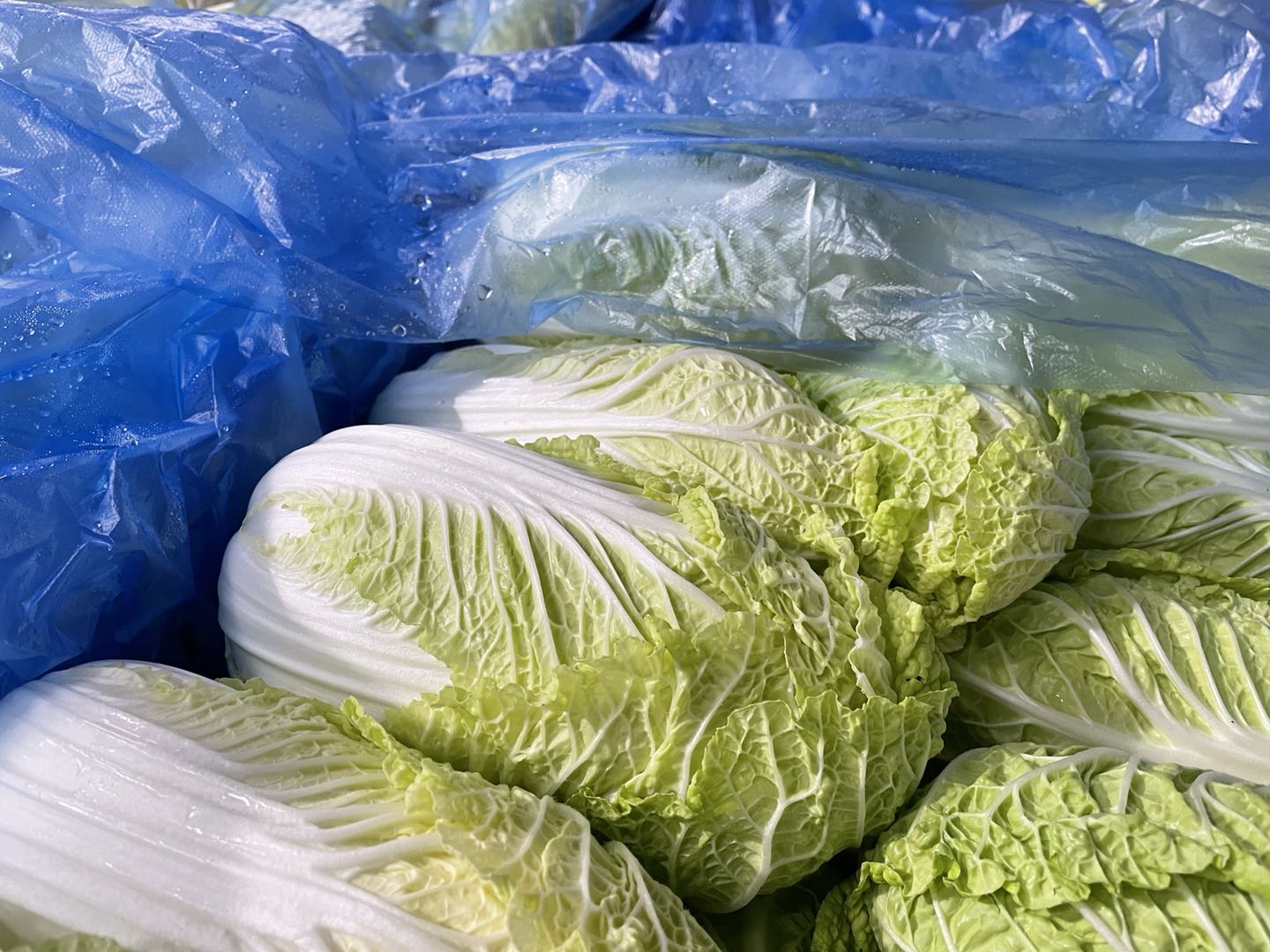 为了保持新鲜度,我的一些兄弟姐妹被农民朋友盖上了无纺布,目前还躺在地里。因为这次温度骤降的速度实在太快,还有一些相对耐寒的蔬菜和小苗没来得及被照顾,29日晚的大风、冰冻和雨雪那么吓人,不知道它们现在可还好。