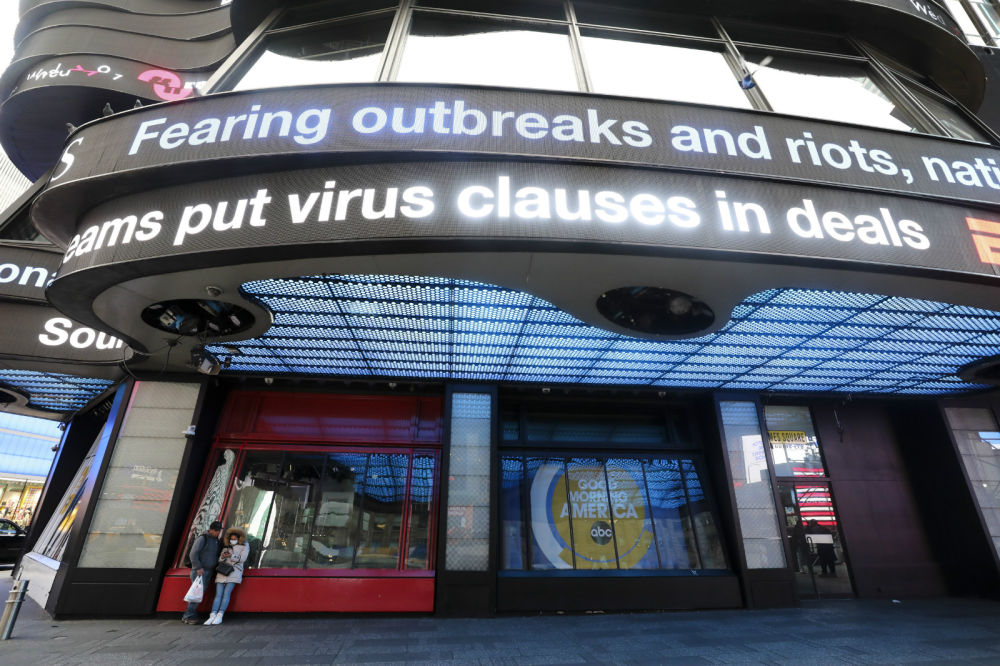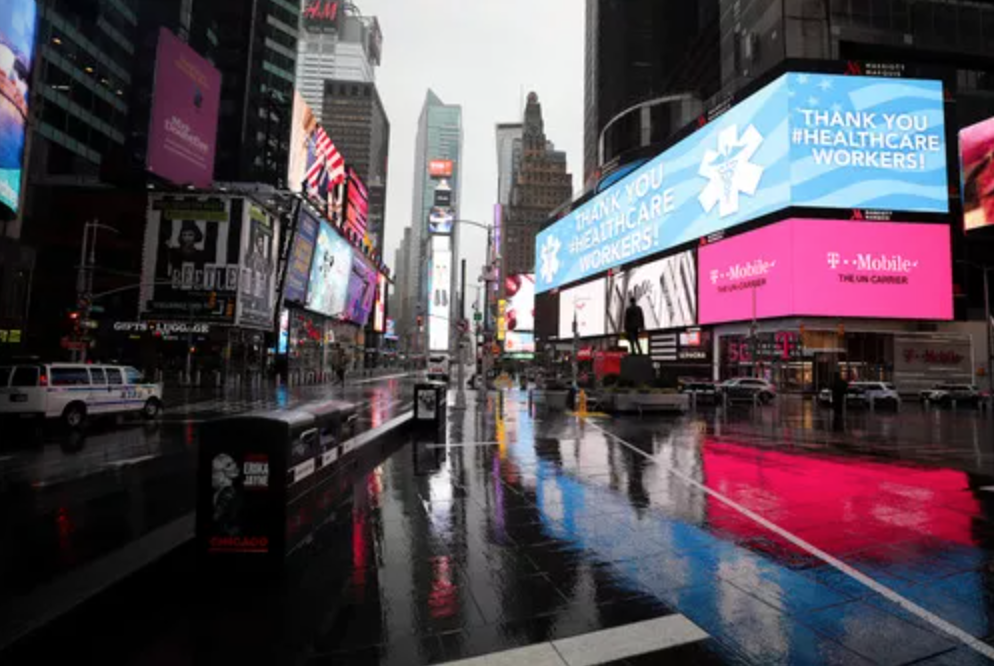 3月23日拍摄的空荡荡的时报广场。新华社记者王迎摄