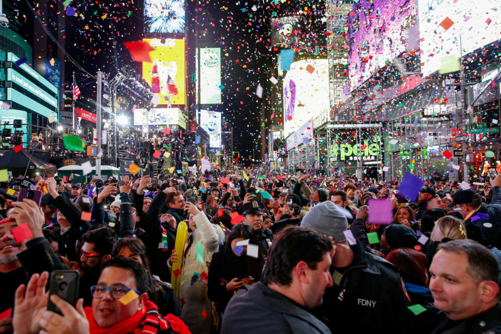 1月1日凌晨,人们在美国纽约时报广场参加一年一度的跨年庆祝活动。新华社/路透