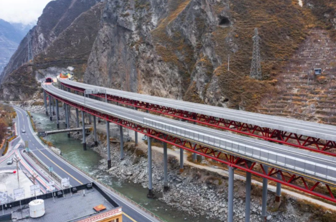 汶川克枯大桥是汶马高速公路的控制性工程之一,是全国首座预应力钢管混凝土桁梁桥,全长6.43公里,被誉为川藏线上的“彩虹桥”。