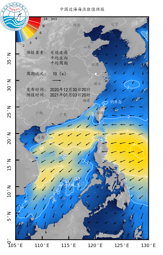 1、今年元旦假期前夕,一股强冷空气席卷中国近海,海况恶劣。到元旦假期,东南部近海仍将维持较大的海浪过程:预计1月1—3日,台湾海峡和南海中北部海域有3.5~4.5米的大浪到巨浪区,南海中西部海域有4~5.5米的巨浪区。