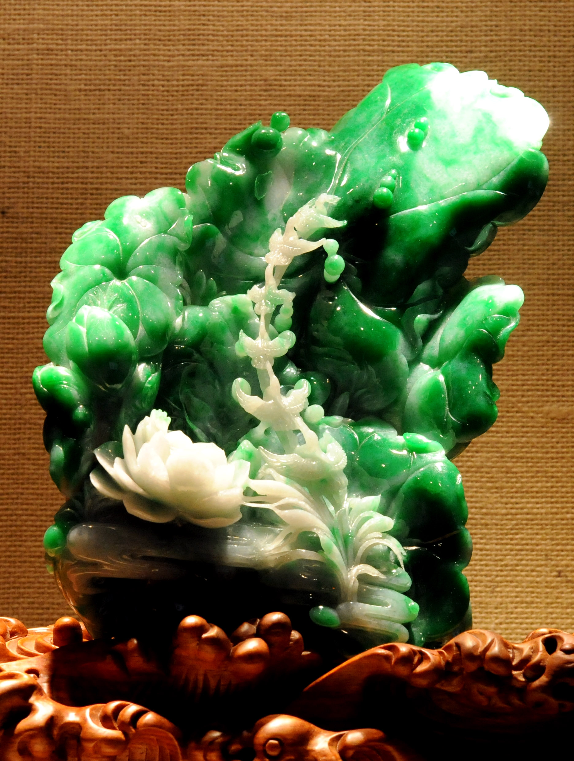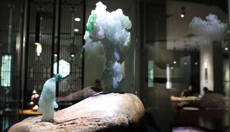▲四会市汇玉堂国际玉文化博物馆里展示的翡翠珍品《一路连发》。新华社记者周文杰摄