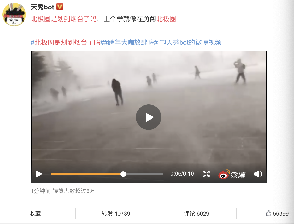 新华社济南12月31日电(记者张武岳张昕怡)“北极圈是划到烟台了吗,上个学就像在勇闯北极圈。”今年以来的最强冷空气来袭,被称为“雪窝”的山东烟台迎来较大风雪天气。当地的市民和网友们纷纷在微博等网络媒体上发声,以幽默的方式展示当地雪情和雪景。