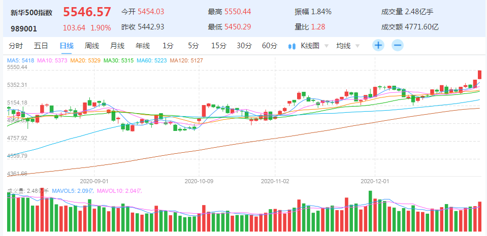 新华社北京12月31日电(记者闫鹏)本周新华500指数(989001)震荡走高,截至31日收盘,报5546.57点,本周上涨3.41%,成分股合计成交1.64万亿元。
