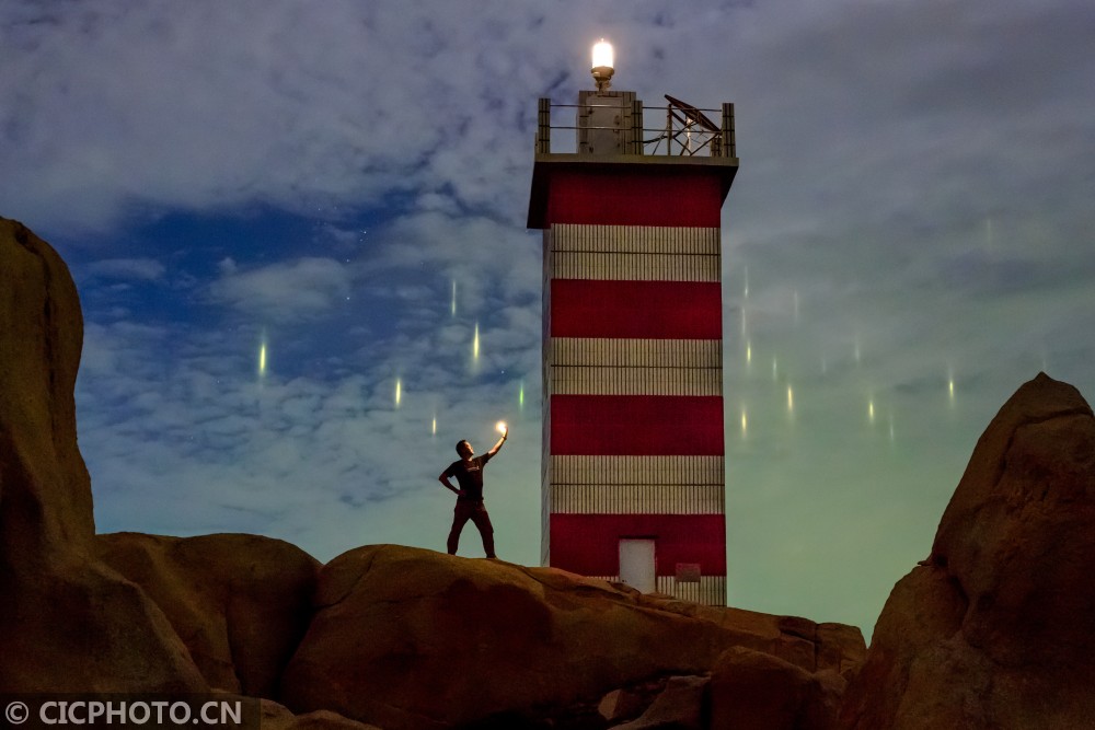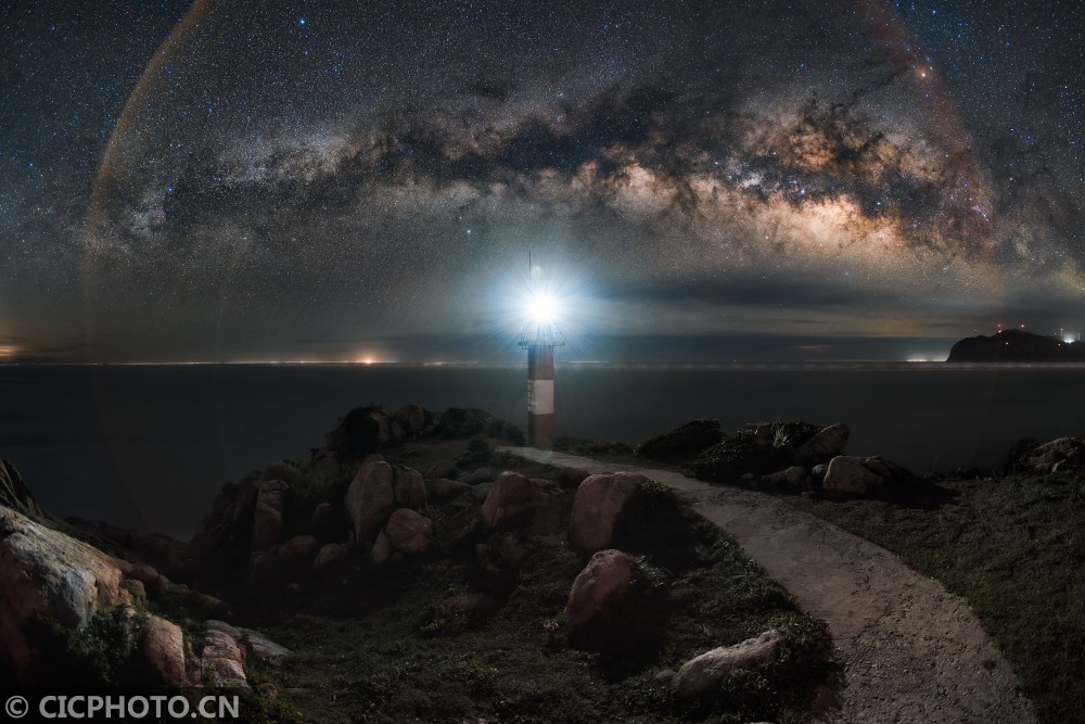 ↑2020年5月25日,福建省霞浦市拍摄的灯塔星河。CICPHOTO/蔡胤霖 摄