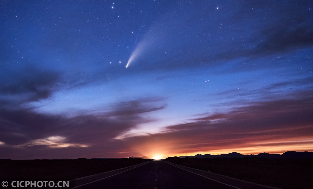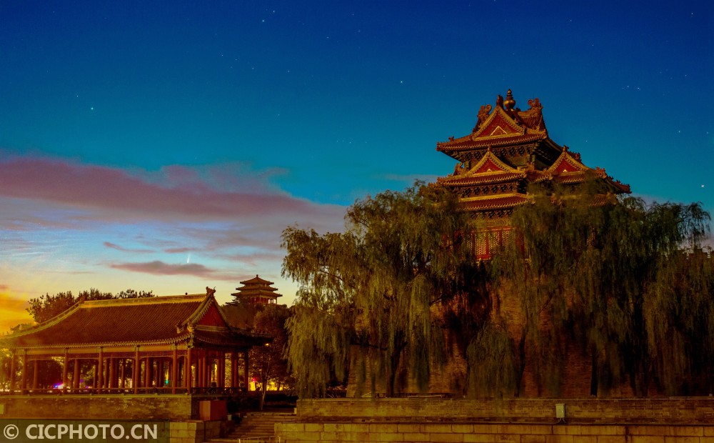 ↑2020年7月7日,在北京市故宫角楼,新智彗星和角楼交相辉映。CICPHOTO/郑志 摄