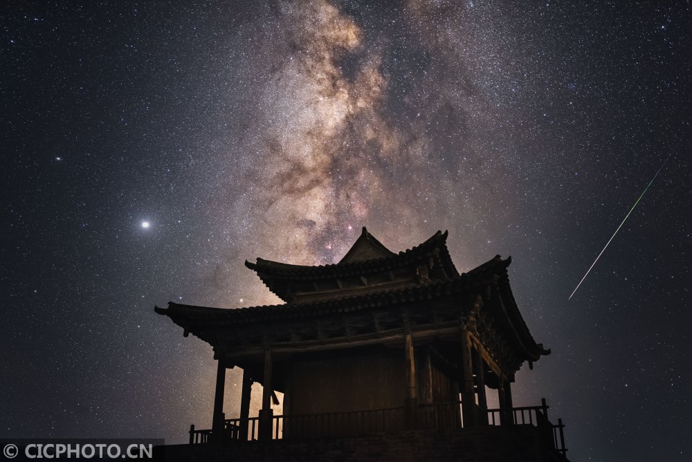 ↑2020年7月19日,在甘肃省白银市永泰古城拍摄的星空。CICPHOTO/原野 摄