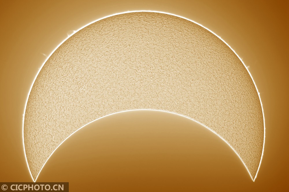 ↑2020年6月21日,在北京市丰台区南宫拍摄的北京日偏食食甚记录。CICPHOTO/孙思 摄