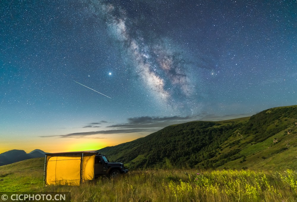 ↑2020年8月9日,山西垣曲县,流星划过历山舜王坪。CICPHOTO/刘钊 摄