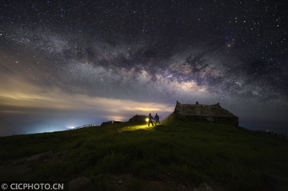 ↑2020年5月20日,江西武功山,在星空的映衬下,疫情中的爱情显得弥足珍贵。CICPHOTO/梁文艺 摄