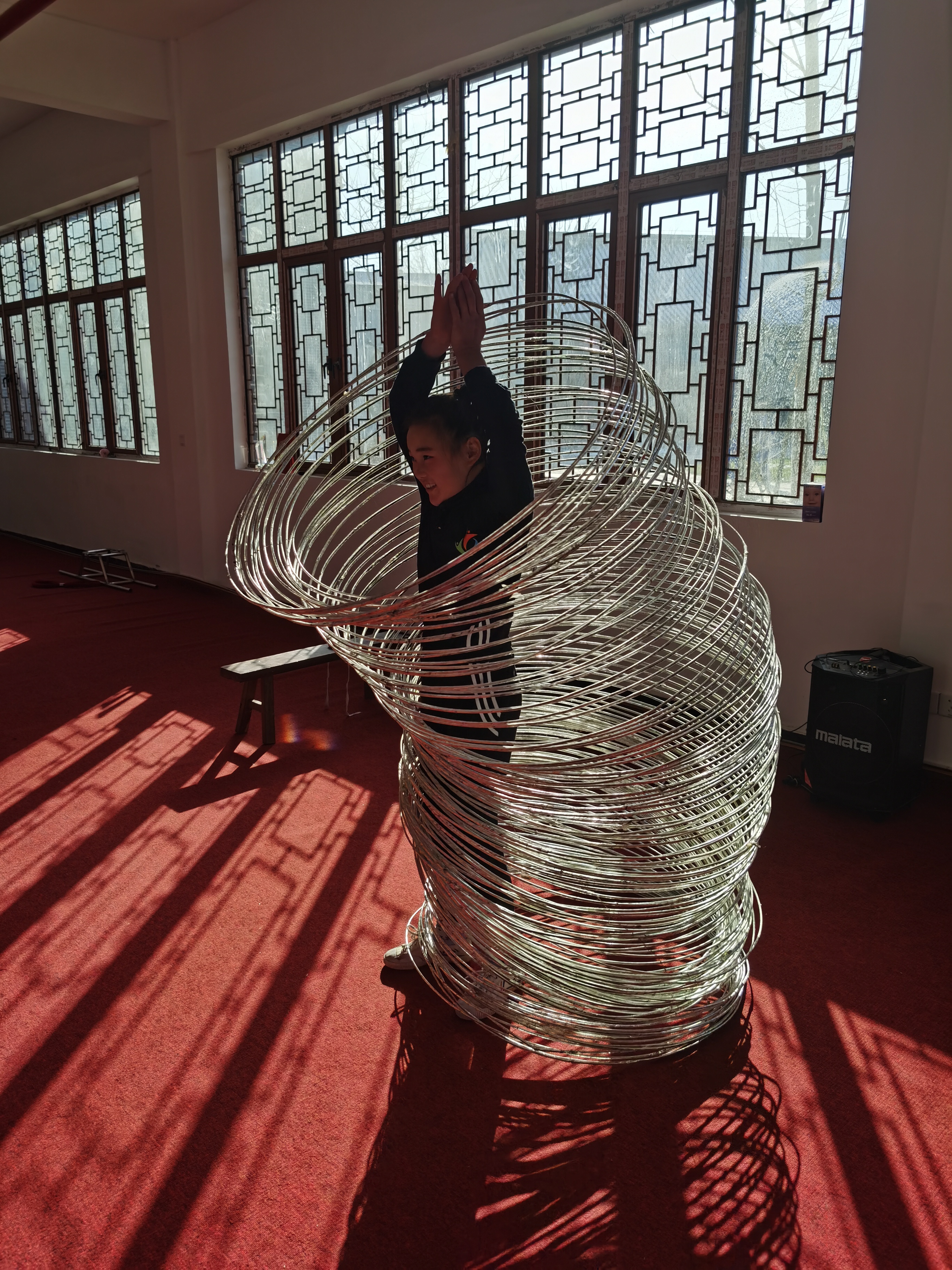 韦芹在学校练功房里练习转呼啦圈。新华社记者 汪奥娜 摄