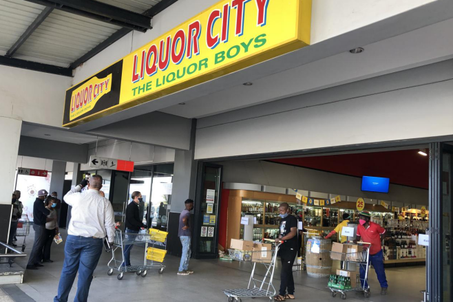 △约翰内斯堡市民在政府解除“禁酒令”后排队买酒