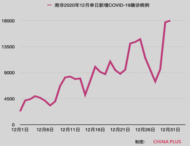 截止到2020年12月31日,南非卫生部公布的数据显示南非累计确诊新冠肺炎病例达1057161例,累计死亡28469例,总治愈人数879671人,现存病例达149021例。 2020年12月,南非在这一个月内总共新增了新冠肺炎确诊病例267157例,新增死亡病例6934例,二者皆呈现上升态势。2020年的最后一天,南非单日新增确诊破历史记录,高达18000例。