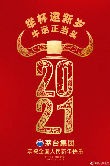 推广|【举杯邀新岁 牛运正当头】2021年来啦!此时此刻,@贵州茅台官微 恭祝全国人民新年快乐!更多内容:网页链接