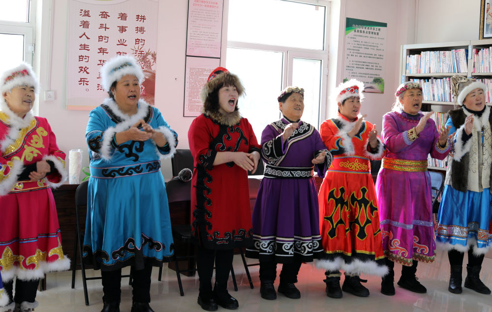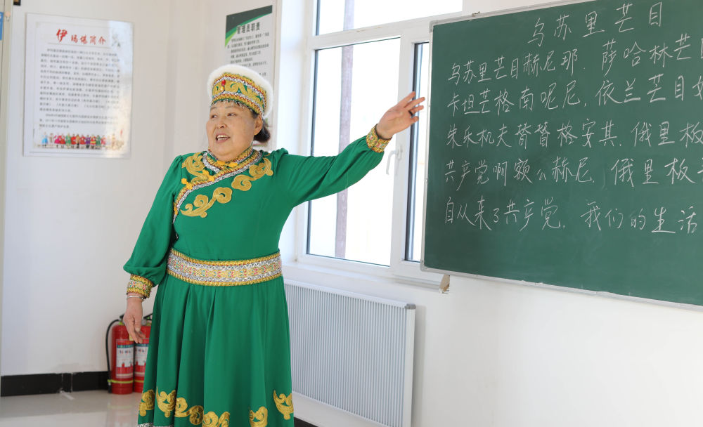 在八岔村伊玛堪(赫哲族古老的说唱艺术)传习所,佳木斯市级伊玛堪传承人吴桂凤正教村民唱赫哲族传统民歌。她说,得益于党的好政策,赫哲族从渔猎到农耕,再到发展文化旅游,赫哲人的日子越来越有滋味。