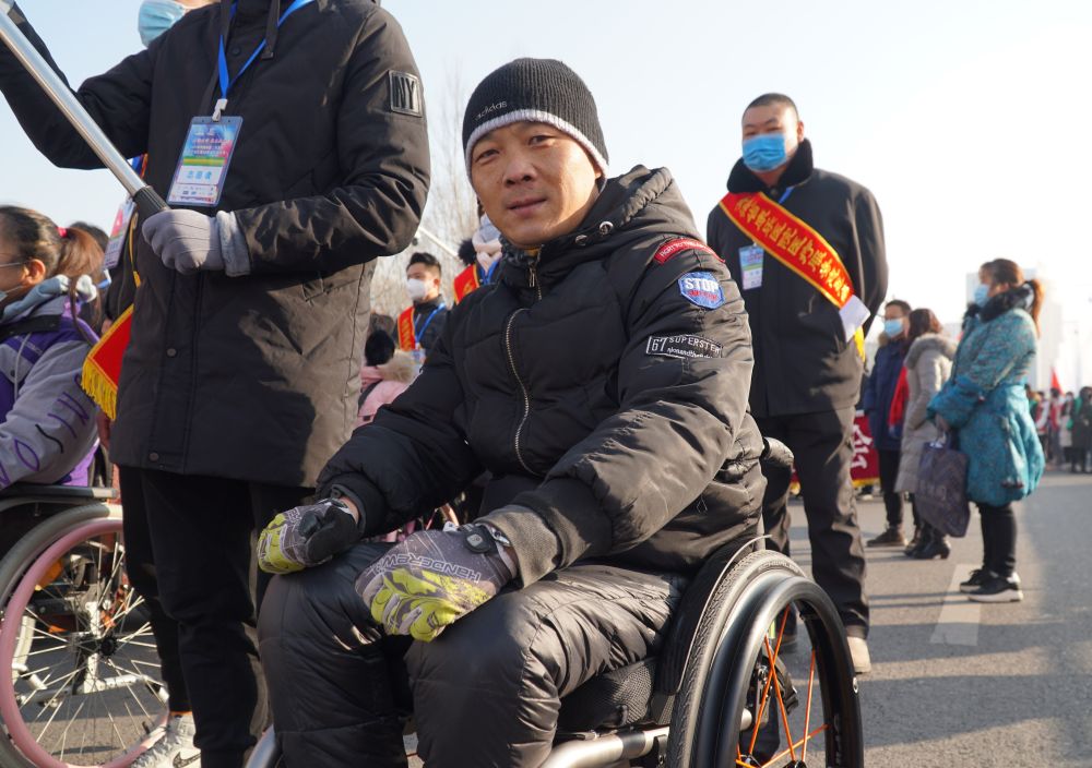 签名墙前方的慢跑方队里,残疾人方队的运动员们也蓄势待发。40岁的韩杰是一名脊髓损伤患者,虽然下半身无法行动,但积极阳光的心态是他奔跑的动力源泉。