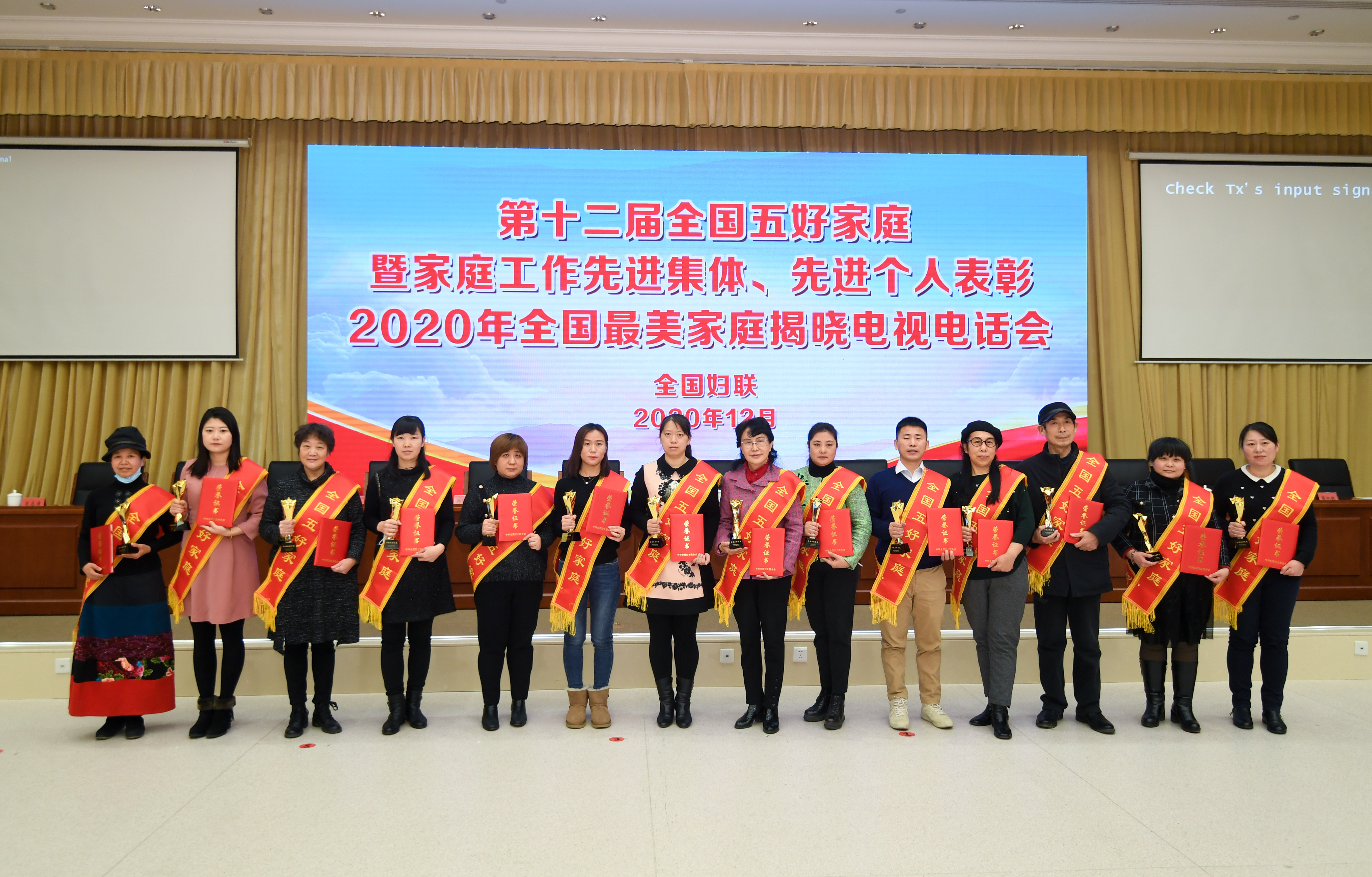 2020年12月31日,全国妇联表彰第十二届全国五好家庭,揭晓2020年全国最美家庭。图为全国五好家庭获奖代表在会后合影。新华社记者 陈晔华 摄