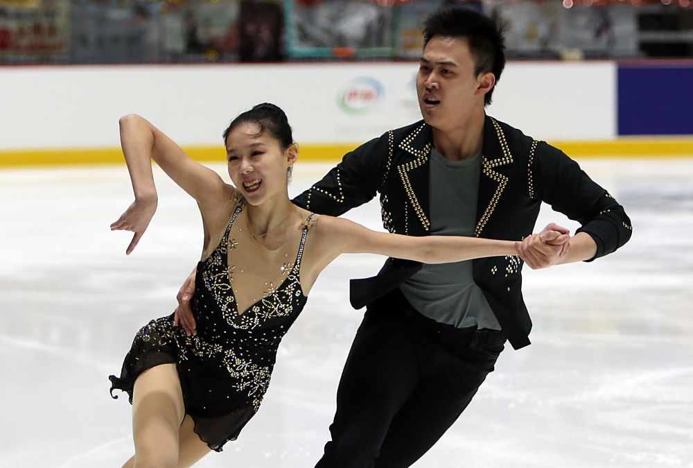 1月1日,“精英队”选手王瑀晨(左)/黄一航在双人滑短节目比赛中。新华社记者 雒圆 摄