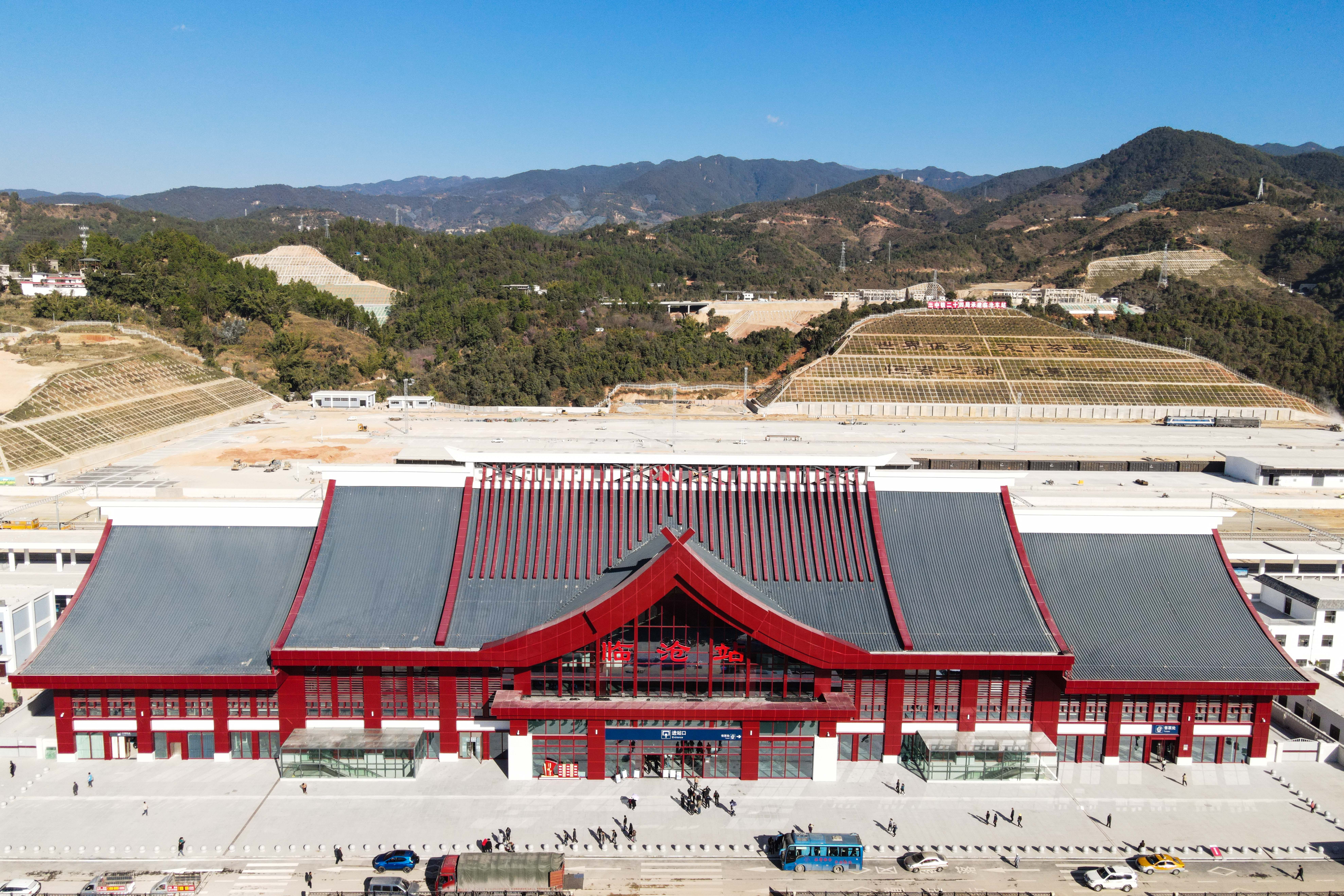 这是2020年12月30日拍摄的铁路临沧站(无人机照片)。新华社记者 王冠森 摄