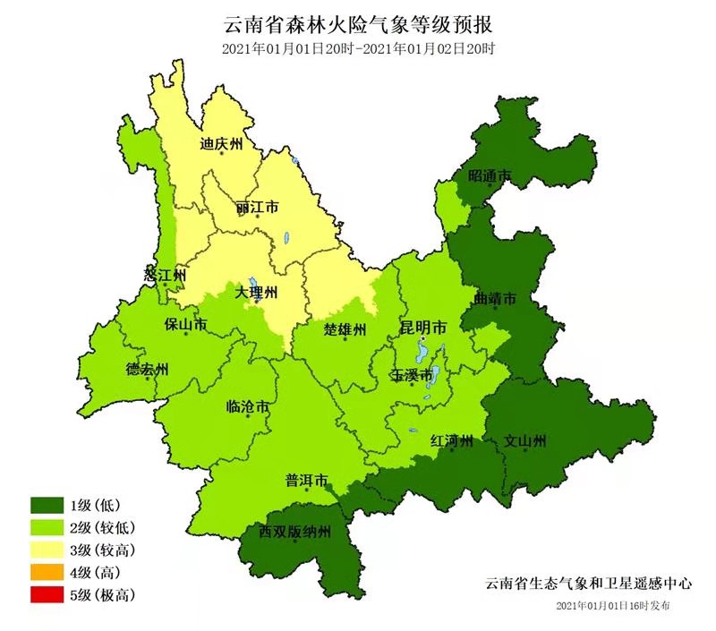 据云南省生态气象和卫星遥感中心发布,1月1日20时至2日20时,云南迪庆、怒江东部、丽江、大理北部和东部、楚雄北部气象风险等级较高,为3级,其它地区1~2级(较低)。
